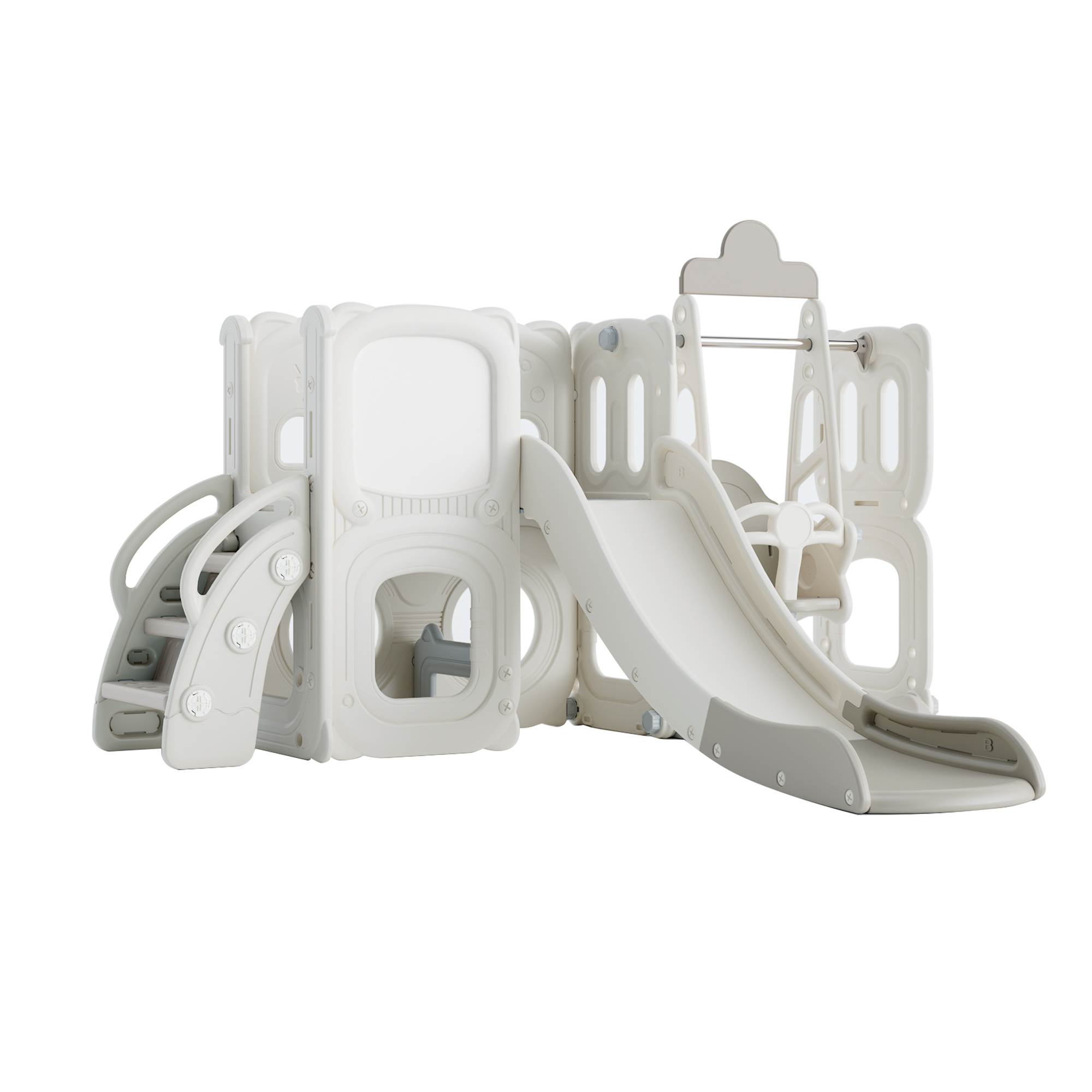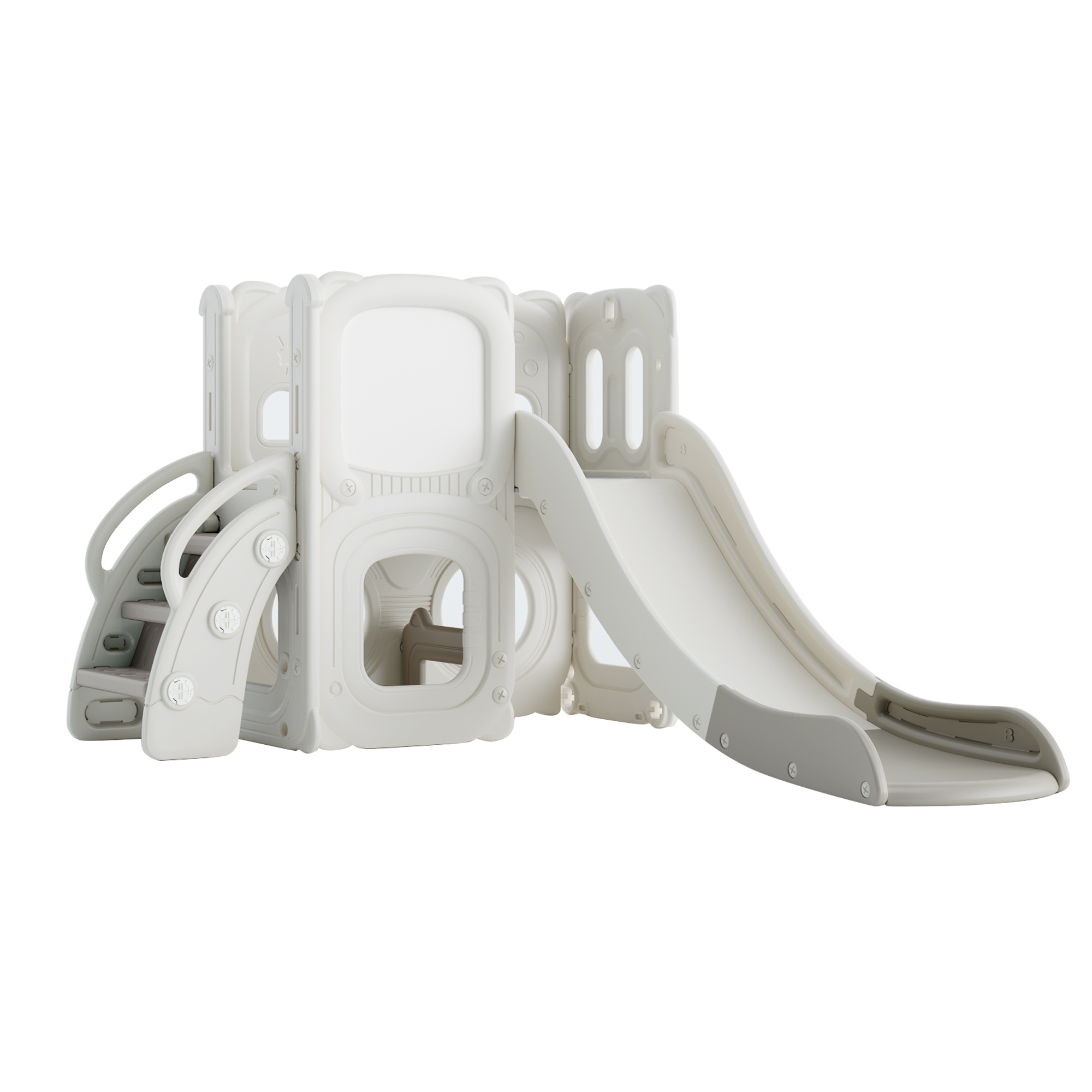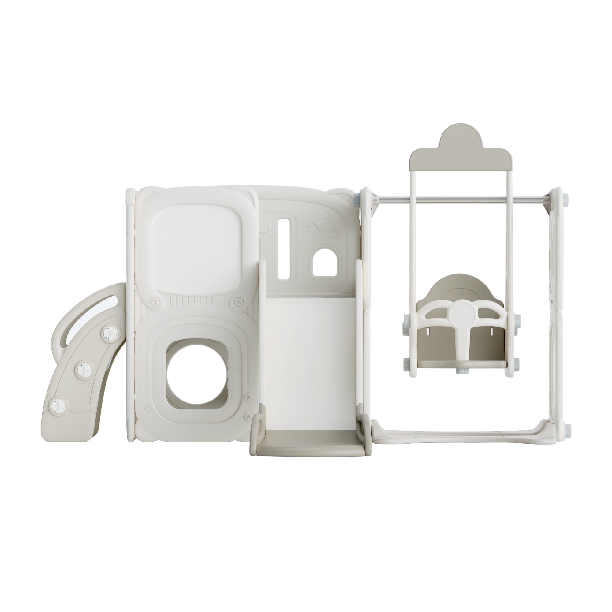 [5 IN 1 Slide Set] This slide playset structure includes 5 main play parts which are kids' favorites a step ladder to climb, a smooth slide to rush down freely, a swing set to swing, a drawing board and an organizer compartment to hide and store their own small toys.