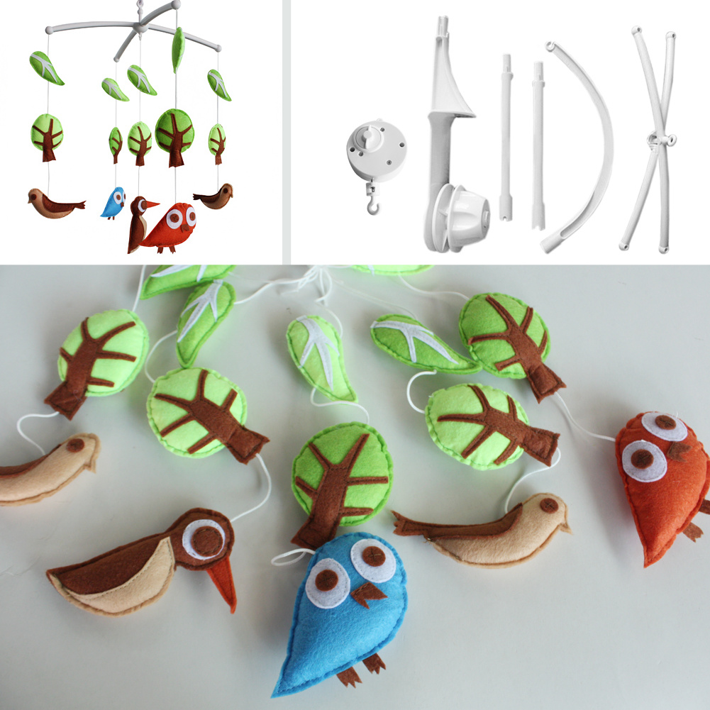 This handmade baby crib mobile plays light music to help your baby easily fall asleep. Easy operation and convenient to use; it will rotate while playing music. Each bed bell plays Only One soothing pure and light song. Keep baby calm and happy. It is an essential product for baby and nursery. Perfect for baby shower or mom-to-be gift for baby's nursery. Baby's nursery room decoration. The toys are made from nonwoven fabric.
